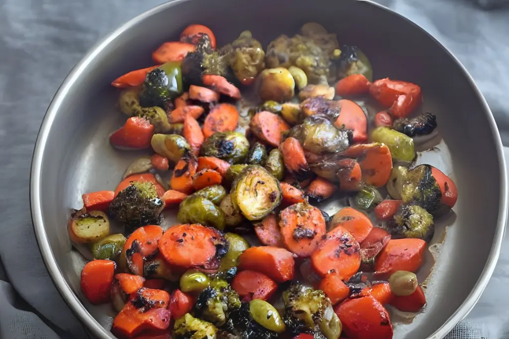 - Pour the glaze over the vegetables and toss gently to coat.